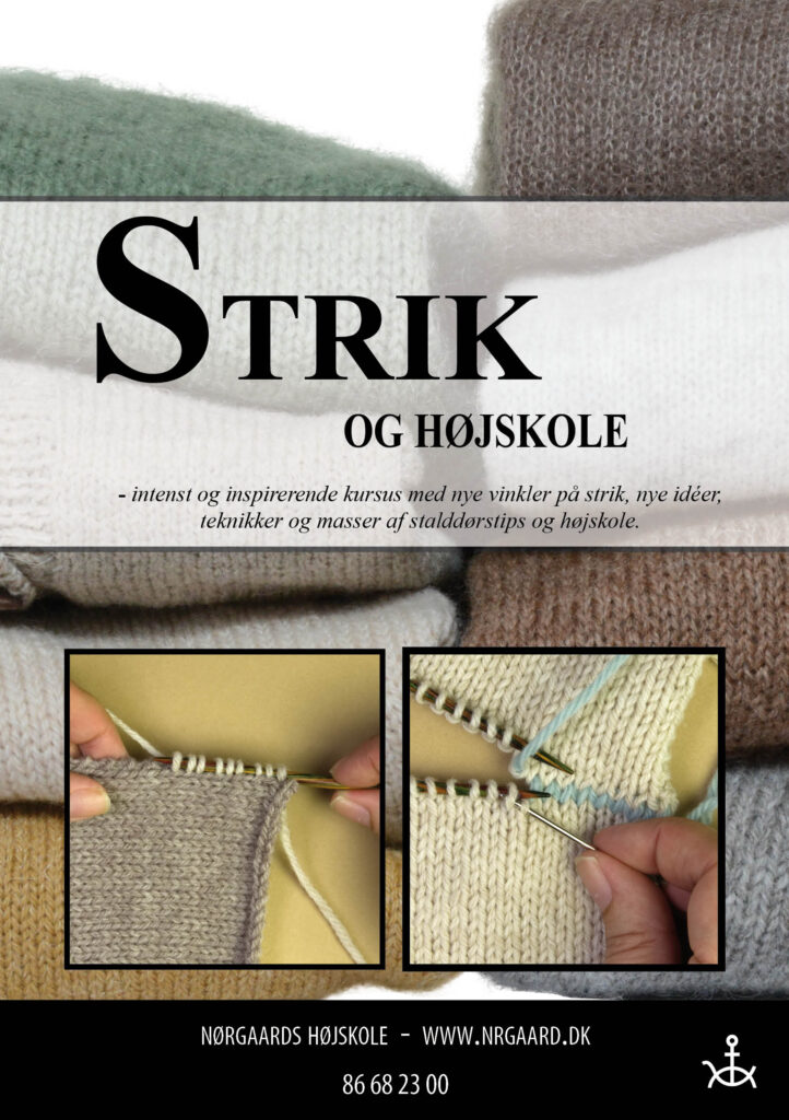 På denne uge på Nørgaards Højskole skal vi strikke og opleve den tilfredsstillelse det er at afprøve en strikketeknik og se den smukt udført.